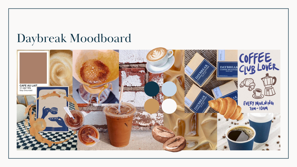 To put my learning into practice, I created a brand plan for a local coffee shop in my hometown, called Daybreak Coffee Roasters. At reasonable prices, they offer some of the highest grade coffee in town (if not, the highest). This kind of product, in my opinion, deserves an elevated visual brand to match it’s quality. Through this project, I hope to offer Daybreak a solid strategy for growing their business and influence as a leading local coffee roaster.