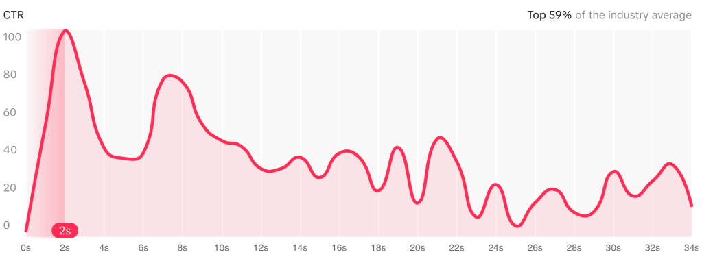 The ad’s engagement metrics (below) show that the ad is generating significant interaction, but improving the opening seconds could lead to even higher retention and engagement rates.