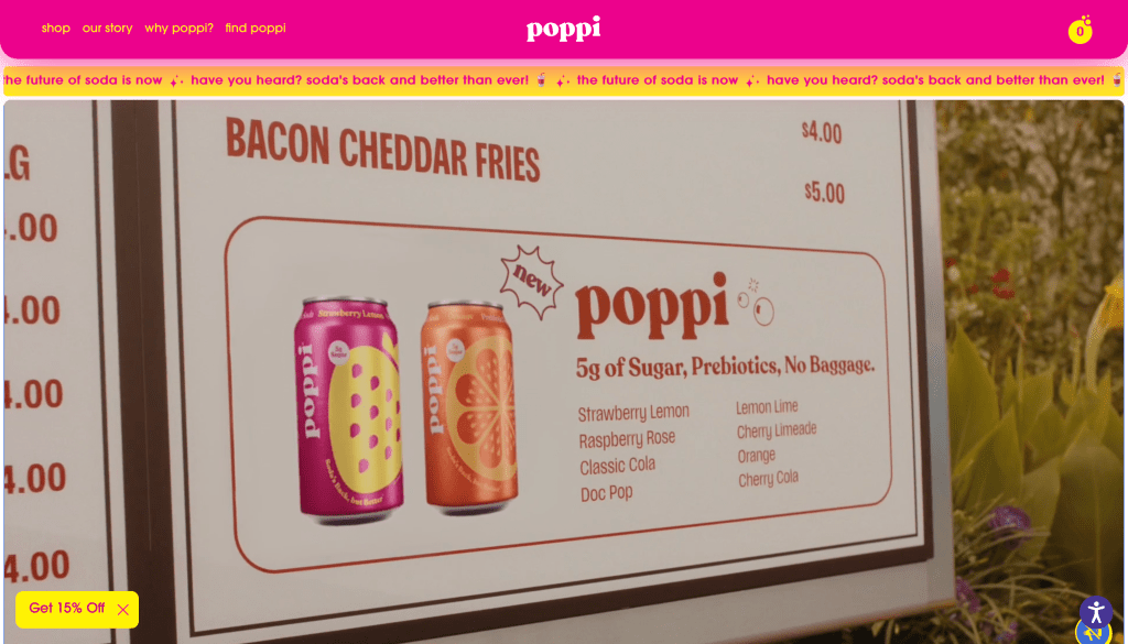 Poppi’s home page, where users are directed via the ad link.
