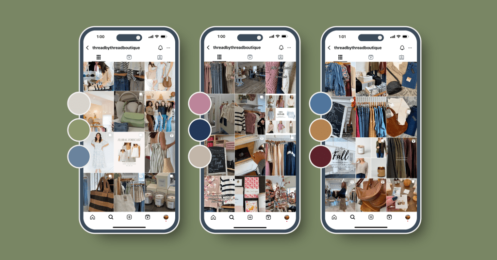 As part of helping manage Thread By Thread Boutique’s Instagram, I’ve worked on adapting our visuals to fit different seasons and collections. This side-by-side shows how we’ve shifted our color palette from soft spring tones to richer fall hues while still staying true to our earthy, natural aesthetic. It keeps things feeling fresh without losing that recognizable TBT look.